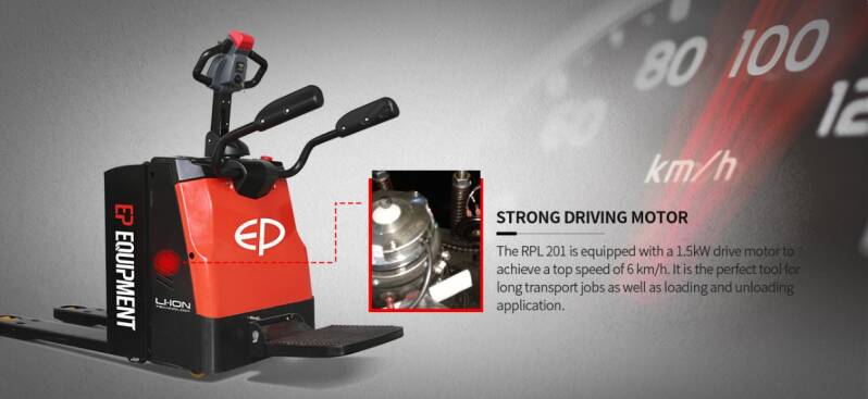 De RPL201 is de nieuwste versie van de Ride-on pallettruck van EP Equipment. Het is volledig ontworpen rond het concept van geïntegreerde Li-Ion batterijtechnologie en biedt niet alleen snel, snel opladen en elektrische stuurbekrachtiging, maar kan ook worden uitgerust met een hogesnelheidsoptie voor een nog hogere productiviteit.